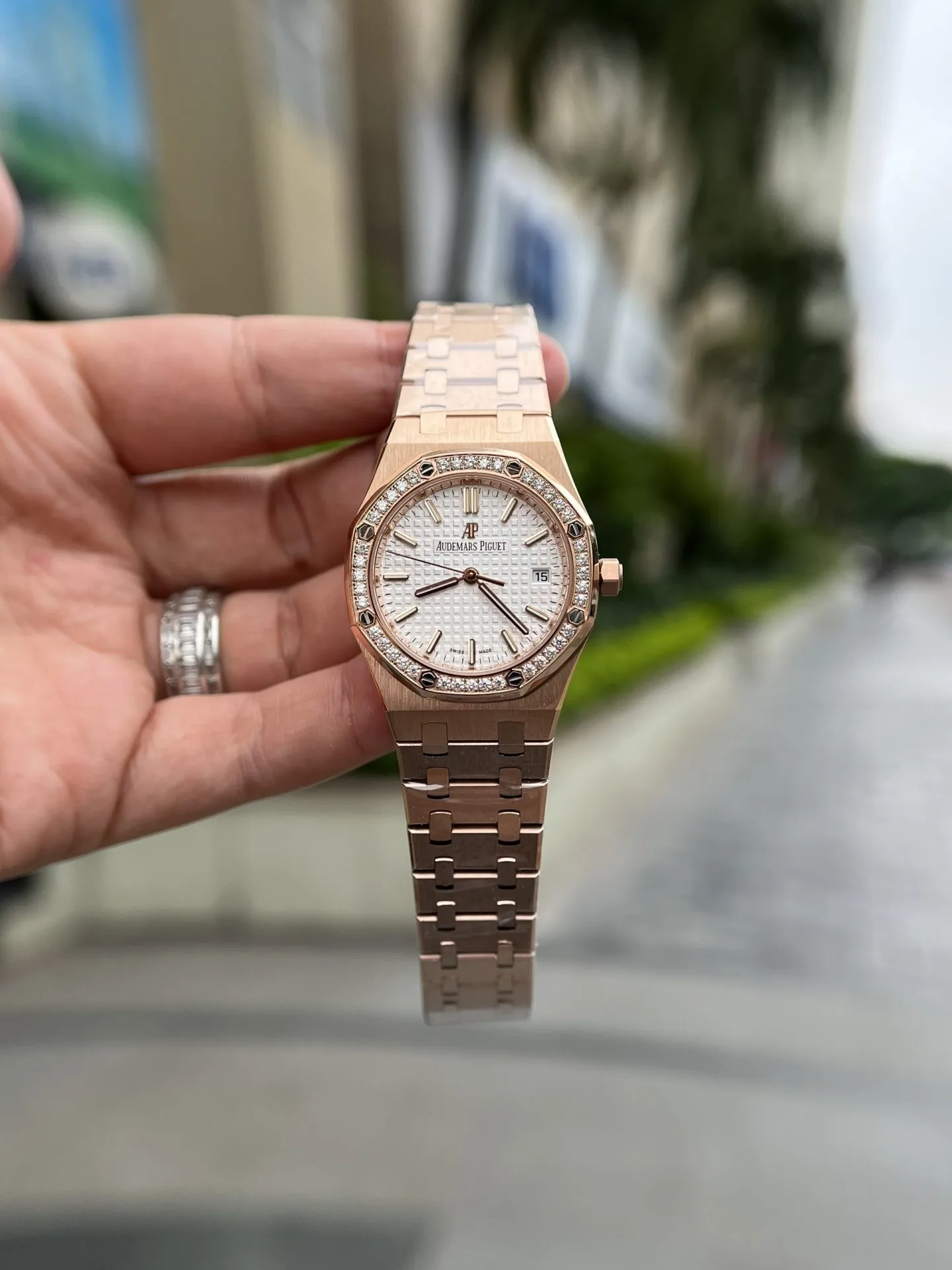 Audemars Piguet Super Clone Watch Royal Oak Rose Gold White Dial 34mm