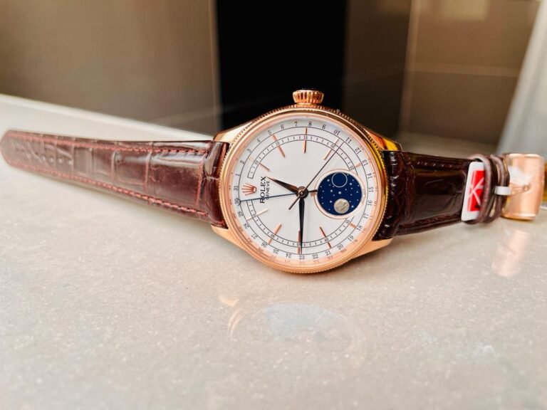 Rolex Cellini Moonphase 50535 RG White Dial on Leather Strap Super Clone