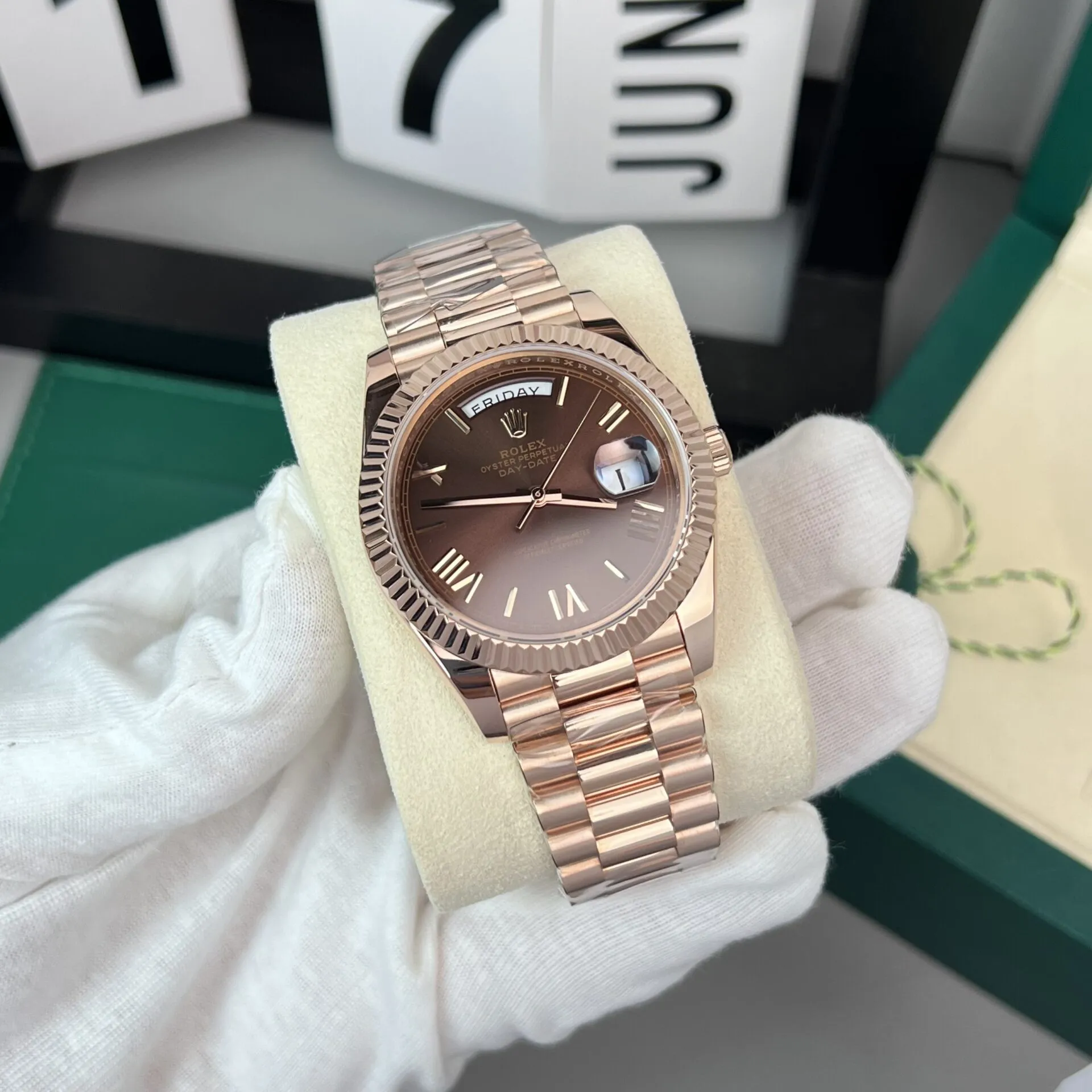 Rolex Day-Date 18K Gold Wrapped Super Clone Watch Chocolate Dial GM V2 40mm