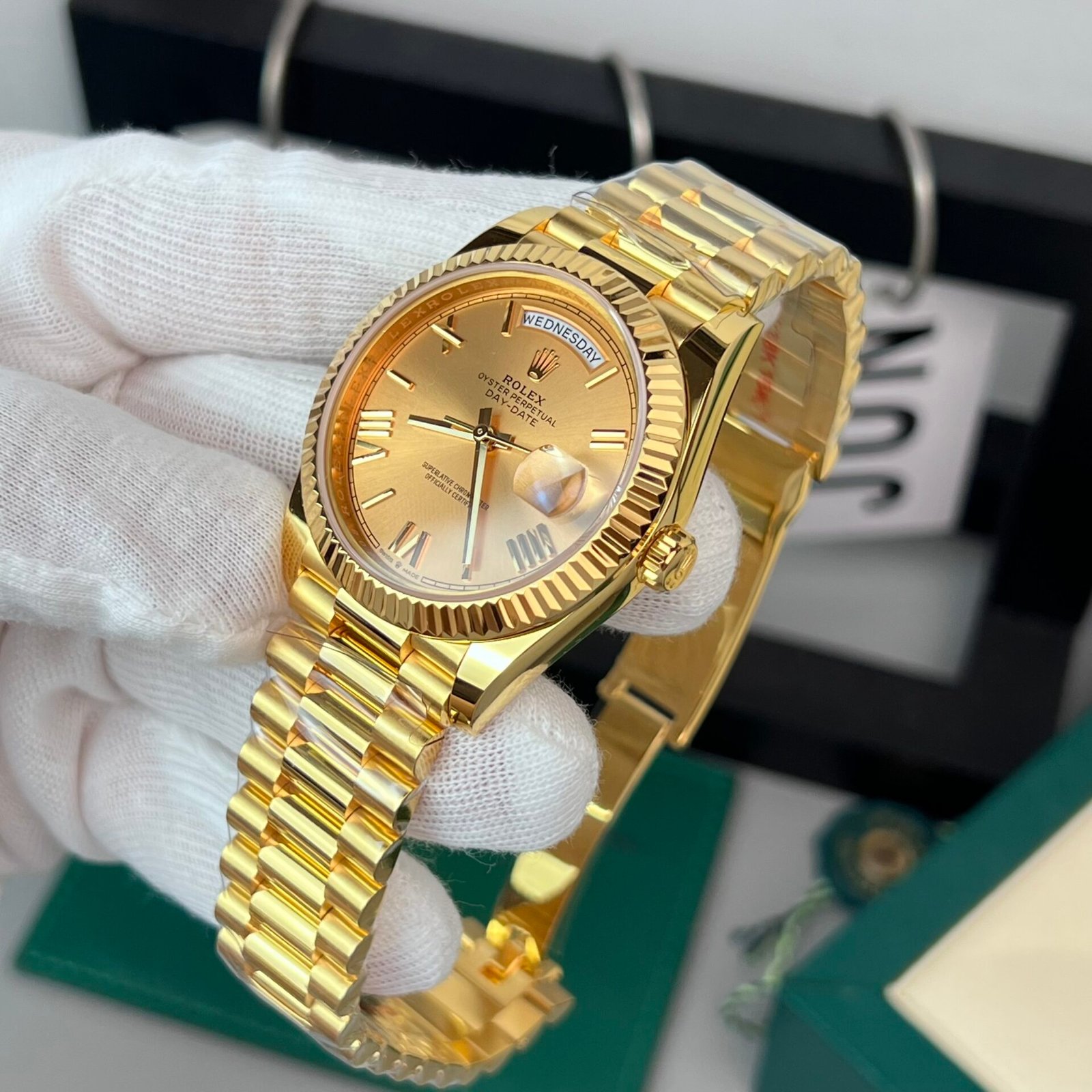 Rolex Day-Date Gold Wrapped Super Clone Watch Champagne Gold Dial GM V2 40mm