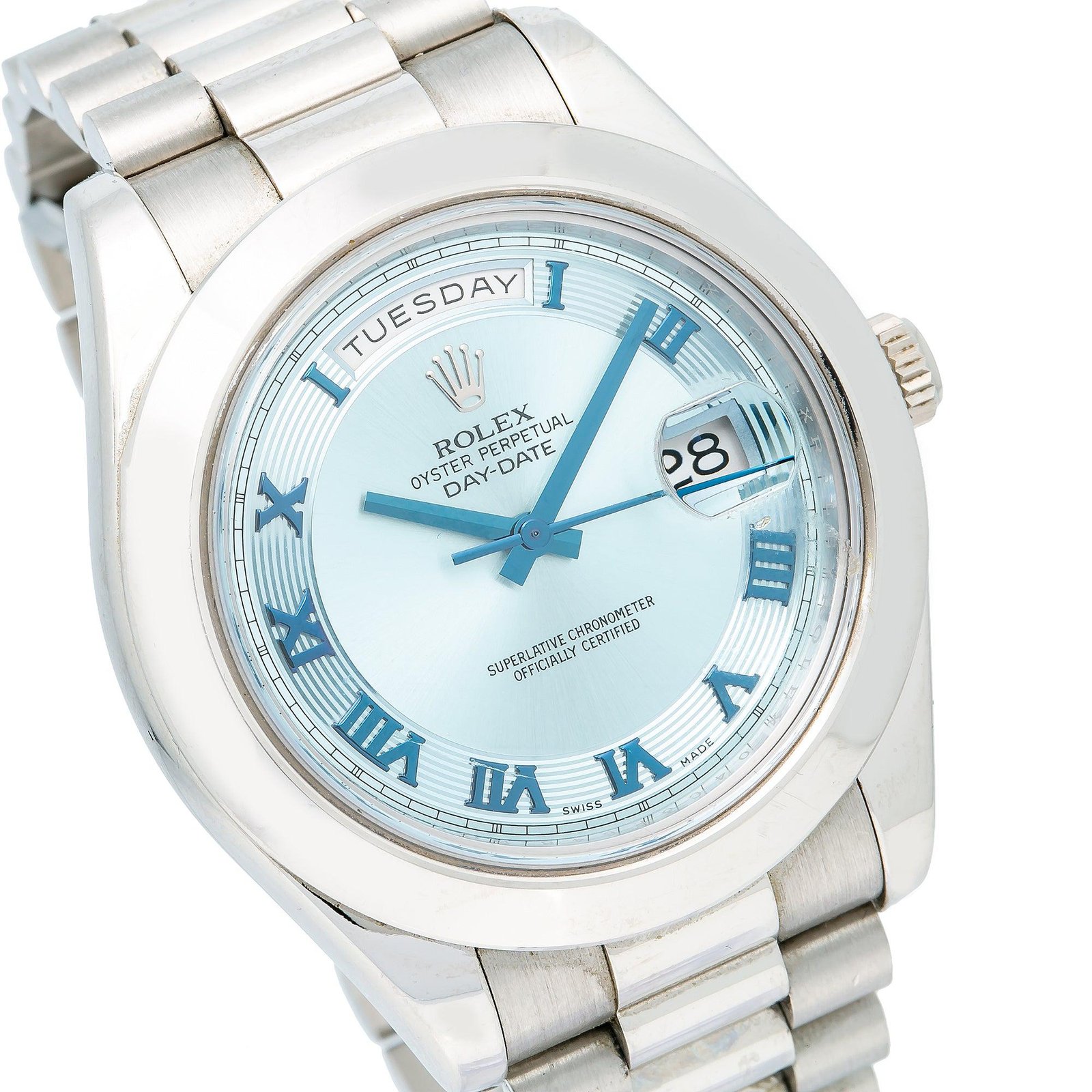 Rolex Day-Date II 41MM 218206 Ice Blue Roman Dial Platinum Smooth Bezel 18K White Gold President Bracelet