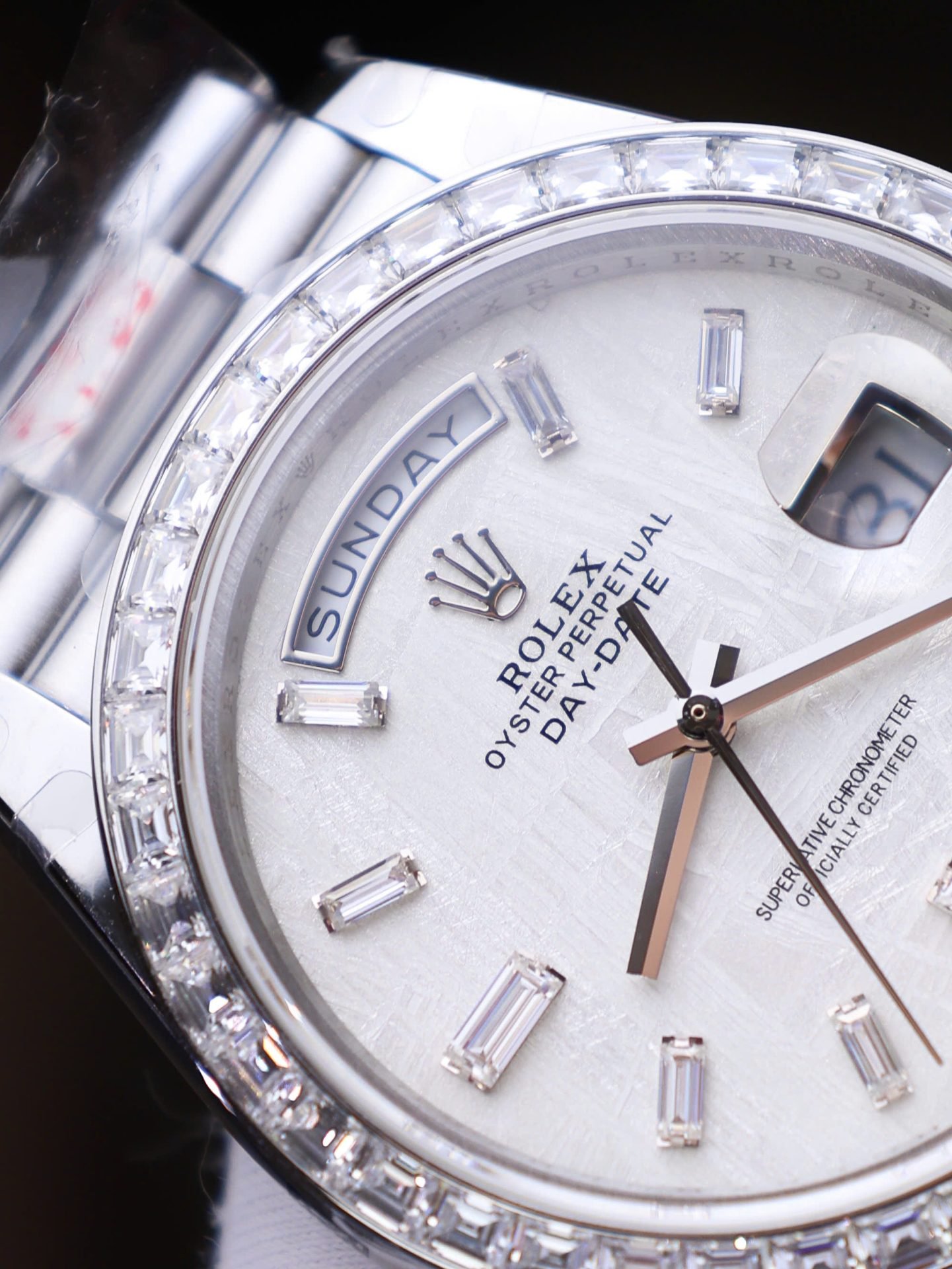 Rolex Day-Date Super Clone Meteorite Dial Custom Diamonds Moissanite Baguette 40mm