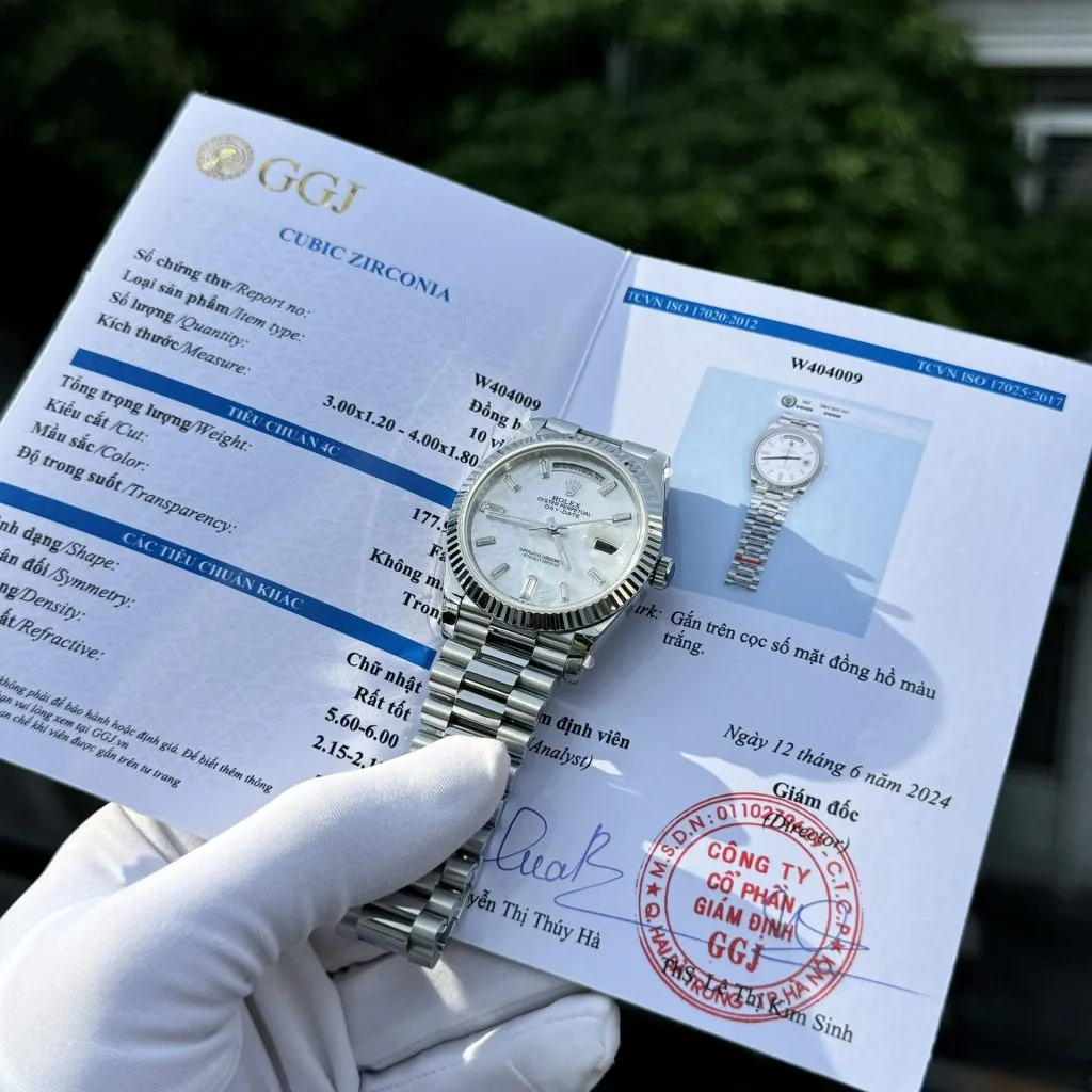 Rolex Day-Date Super Clone Watch Custom Mother of Pearl & Moissanite Diamonds Baguetee 40mm