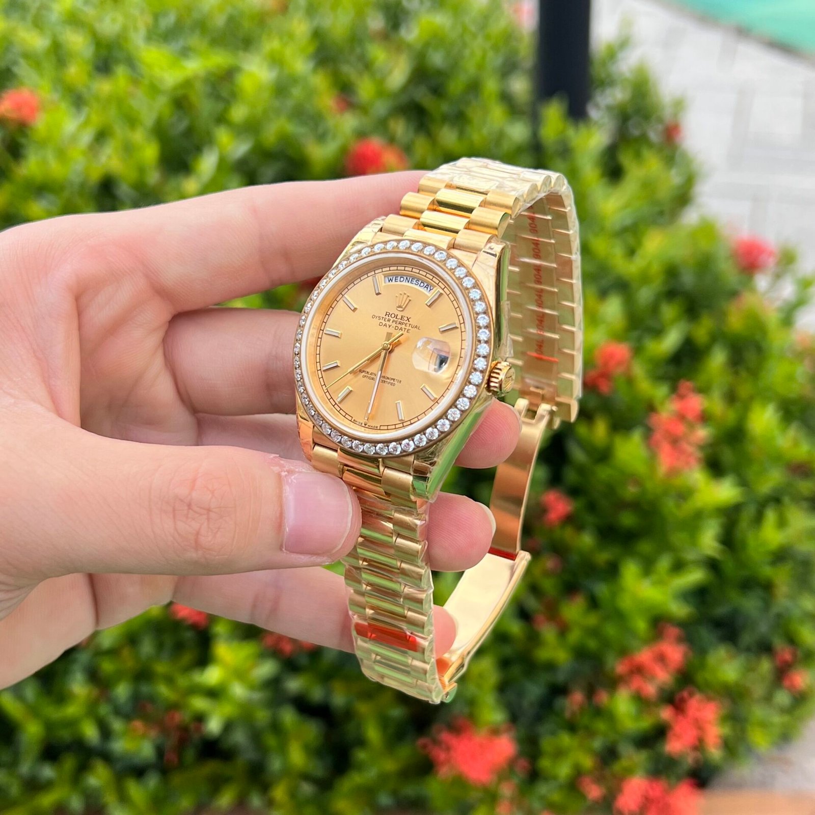 Rolex Day-Date Super Clone Watch Diamond Bezel Champagne Dial 40mm