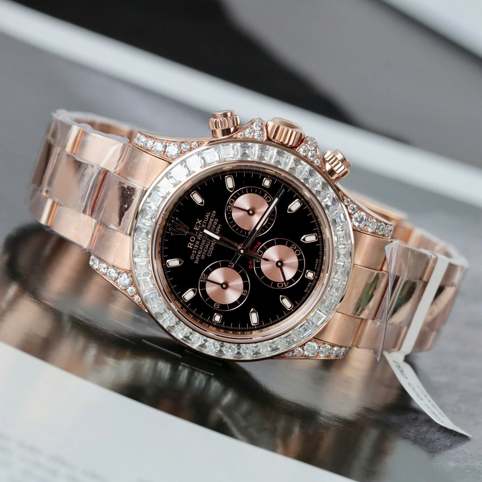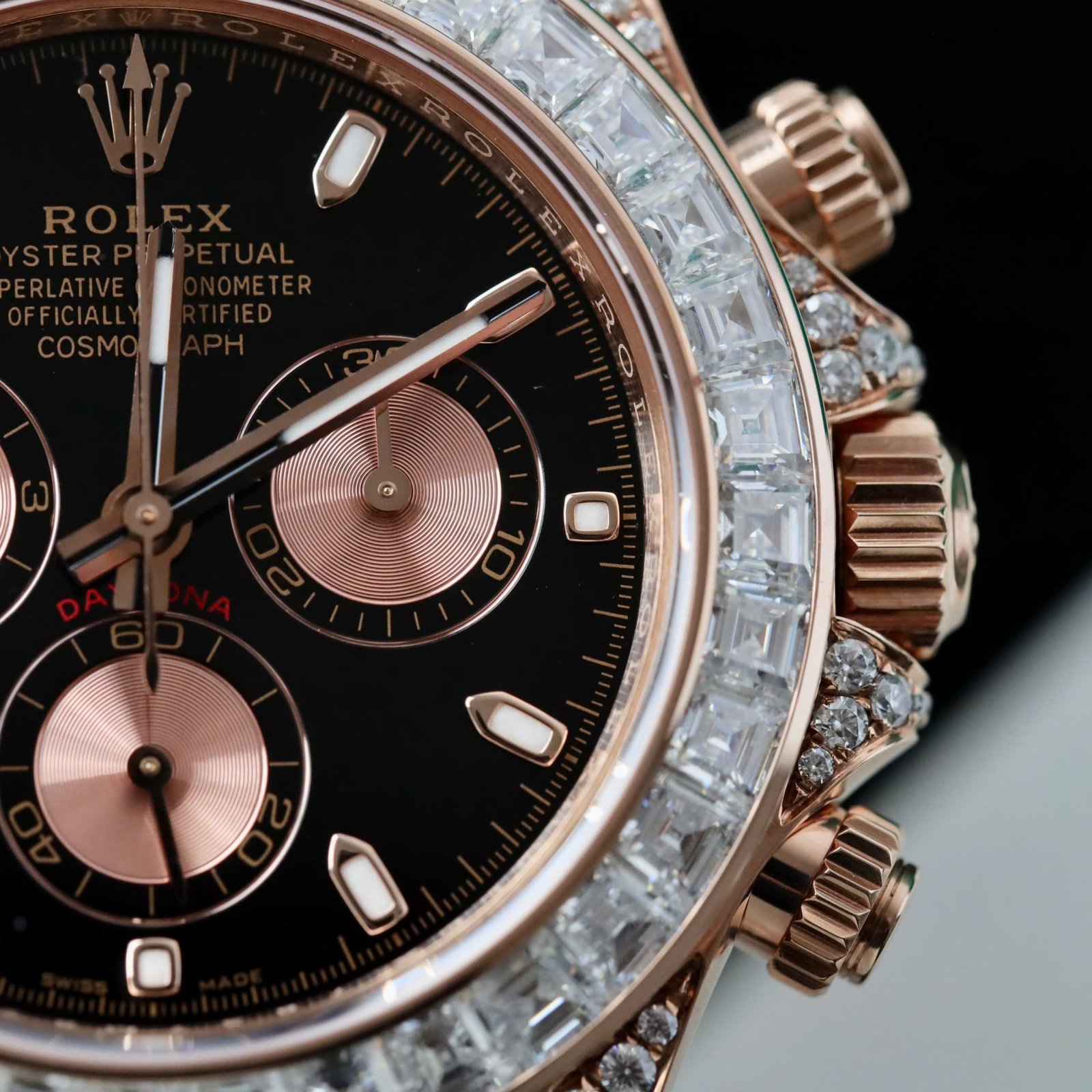 Rolex Daytona Dial Black Super Clone Gold Wrapped + Diamonds Moissanite Baguette 40mm