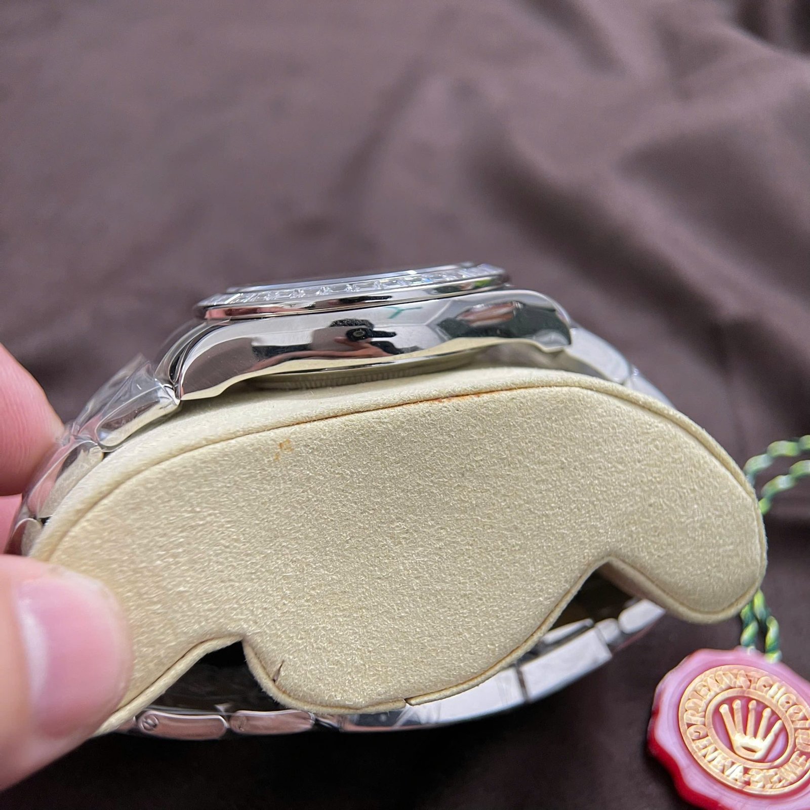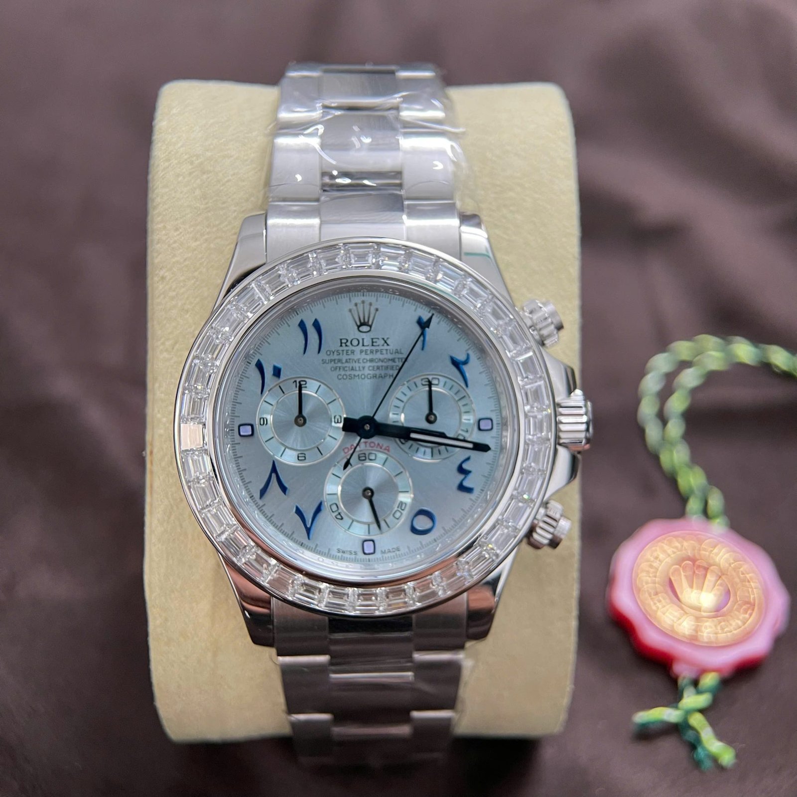 Rolex Daytona Super Clone Watch Custom 18K Solid White Gold Baguette Diamonds 40mm