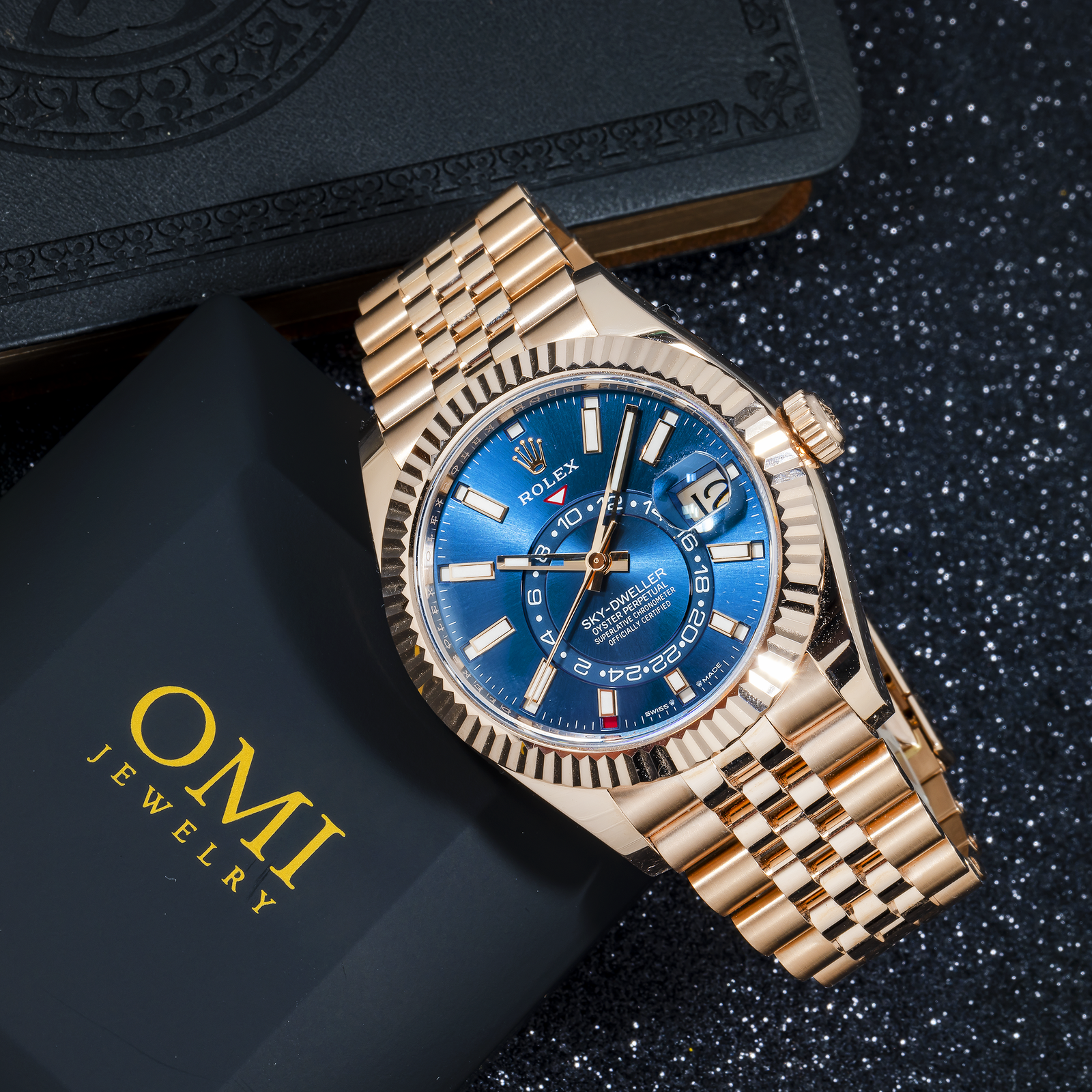 Rolex Sky-Dweller 42MM 336935 Blue Dial Fluted Bezel 18K Rose Gold Jubilee Bracelet