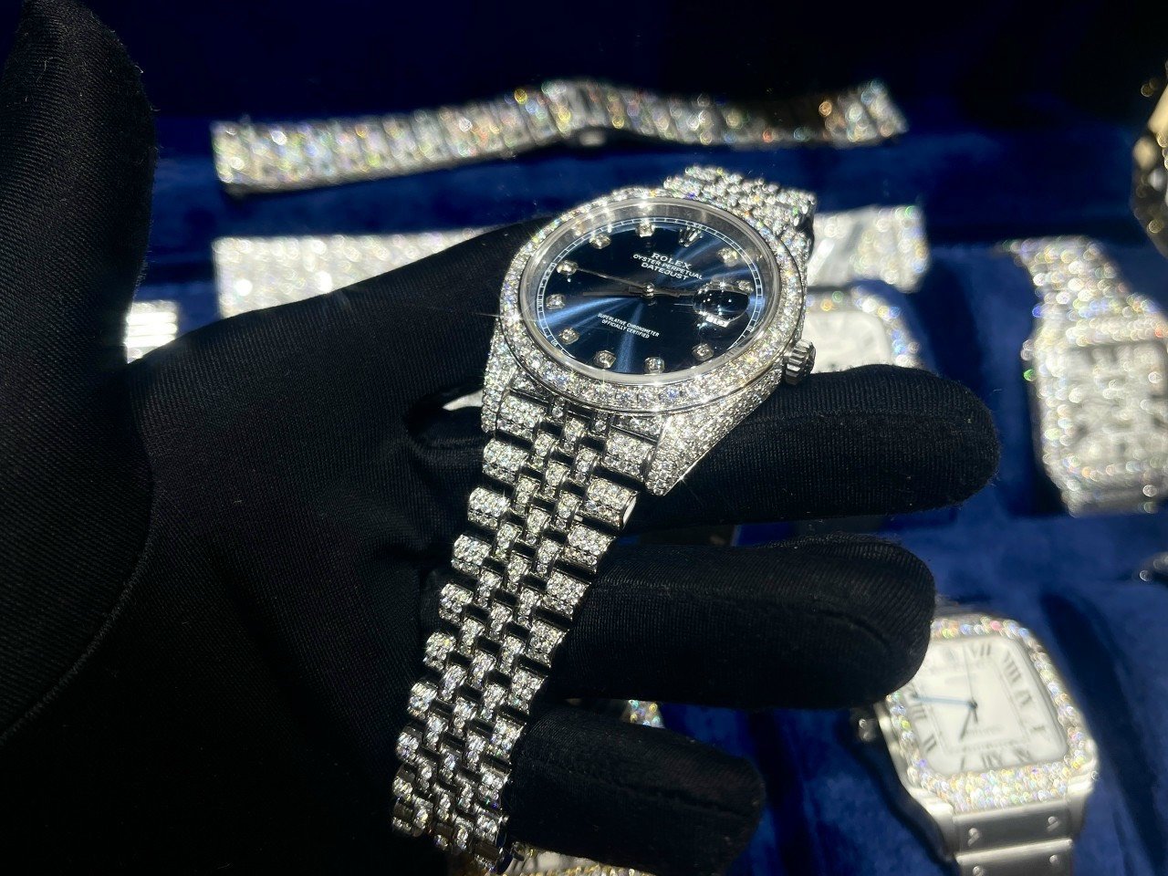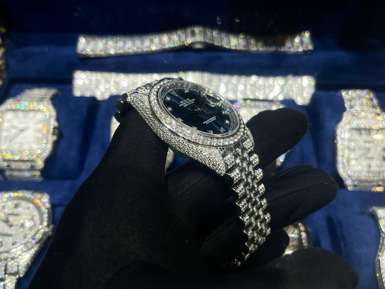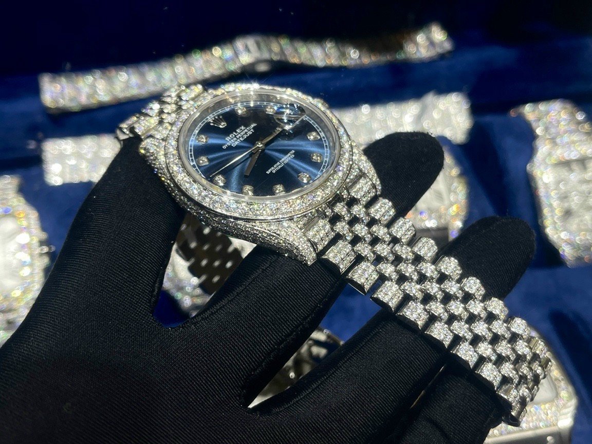 Rolex Super Clone DateJust Dial Blue Custom Full Diamonds Moissanite 41mm