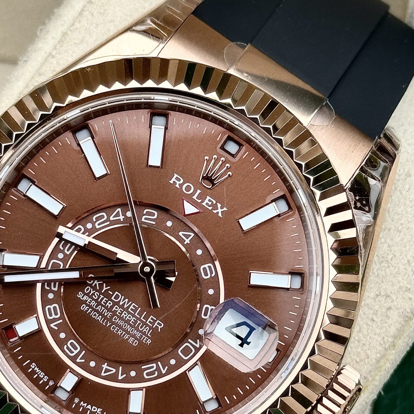 Rolex Super Clone Watch Sky-Dweller 336235 Chocolate Dial Rubber Strap 42mm