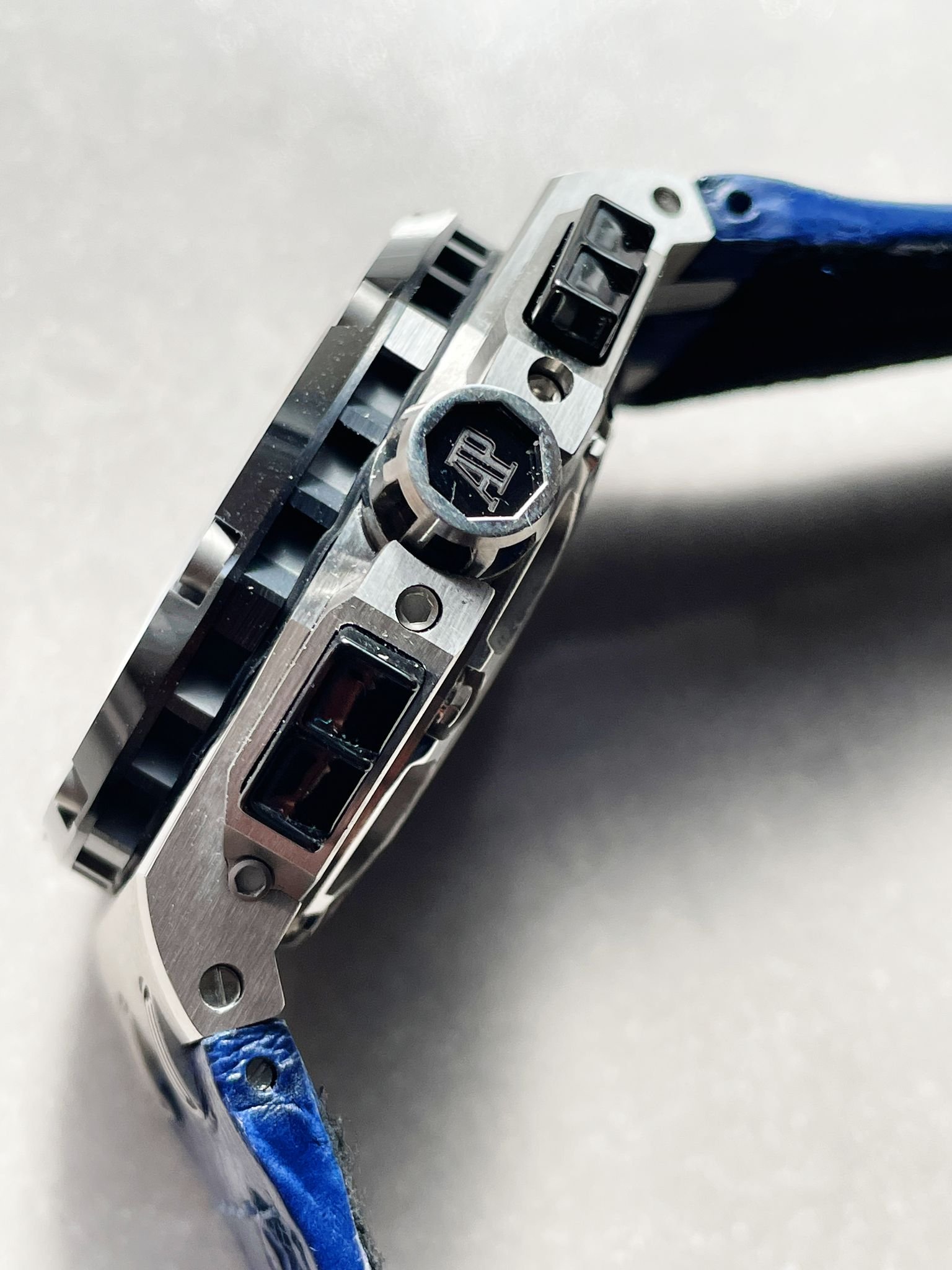 成为第一个“Royal Oak Offshore Rubens Barrichello Ii 26078PO Blue Dial Blue leather Strap” 的评价者